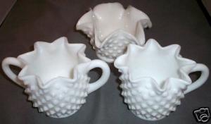 Fenton Milk Glass Hobnail Complete 4 Piece Jam Set     Completed    $11.99