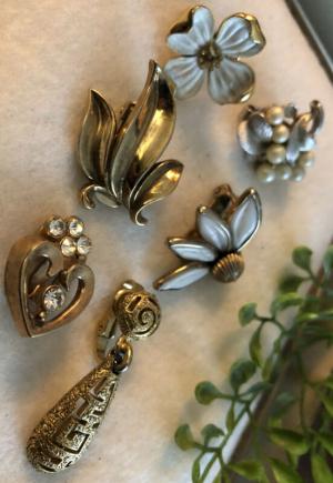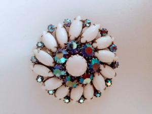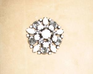 Rhinestone and Milk Glass Domed Black Metal Vtg Pin     Completed    $11.99