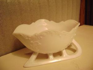 ANTIQUE WHITE MILK GLASS SLEIGH DISH     Completed    $11.99