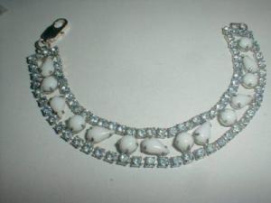 Vintage Milk Glass/Blue Rhinestone Bracelet     Completed    $11.99
