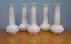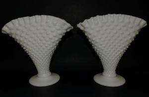 Fenton Milk Glass Hobnail Squat Vases - 2 pc lot     Completed    $11.99