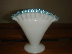Fenton Milk Glass Aqua Crest Fan Vase     Completed    $11.5