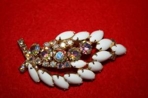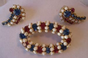 WEISS MILK GLASS, RASBERRY / BLUE PIN /EARRINGS     Completed    $11.5