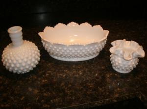 Lot of Three VTG Fenton Hobnail Milk Glass Pieces     Completed    $11.5
