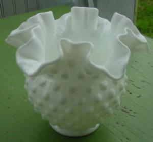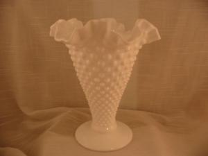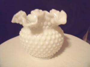 Fenton Hobnail Milk Glass Ruffled Vase N/R     Completed    $11.5