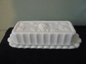 WESTMORELAND MILK GLASS GRAPE BUTTER DISH W/ LID     Completed    $11.5