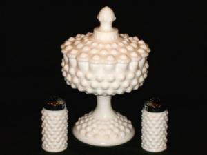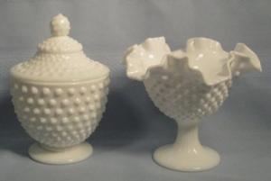 FENTON MILK GLASS HOBNAIL ROUND JAR & COMPOTE LOT     Completed    $11.5