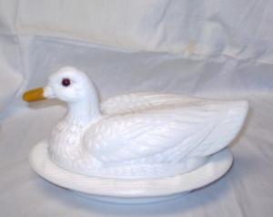 milk glass seagull coivered dish, no reserve     Completed    $11.5