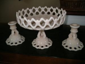 Laced Edged Milk Glass Dishes     Completed    $11.5