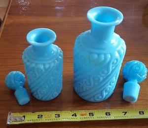 2 Vintage Blue Milk Glass Decanter     Completed    $11.5
