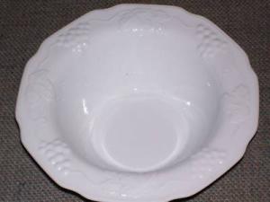 WHITE MILK GLASS CEREAL BOWL IN GRAPE PATTERN     Completed    $11.49
