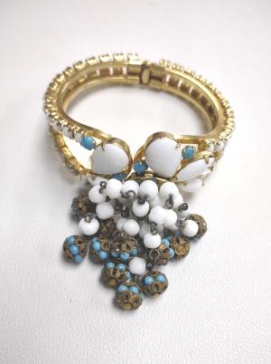 VNTG Chunky Germany Bracelet Ab Crystals Milk Glass     Completed    $11.49
