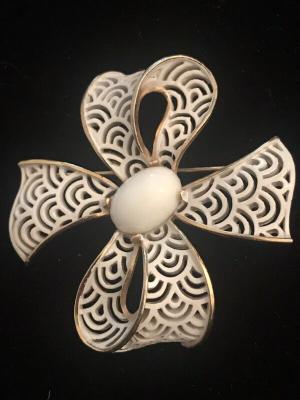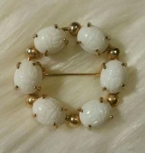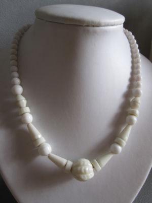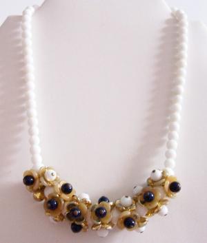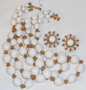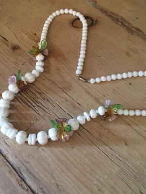 VINTAGE LARGE ORNATE MILK GLASS BEAD NECKLACE     Completed    $11.39