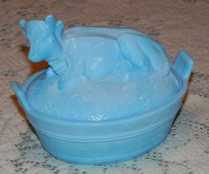 Blue Milk Glass Covered Dish-Cow On Bucket     Completed    $11.45