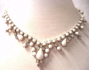 GORGEOUS VINTAGE ART DECO MILK WHITE GLASS NECKLACE     Completed    $11.43