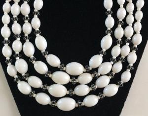 Vintage 4-Strand Milk Glass Bead Necklace     Completed    $11.38
