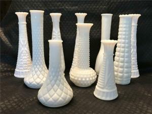 12 milk glass bud vases     Completed    $11.45
