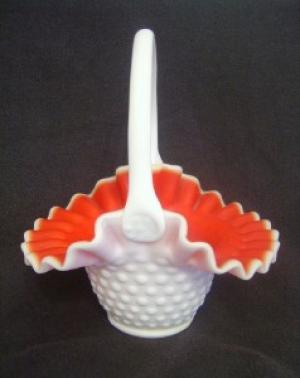 Kanawha Hobnail Basket White Milk Glass Red Inside     Completed    $11.27
