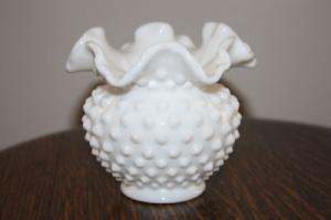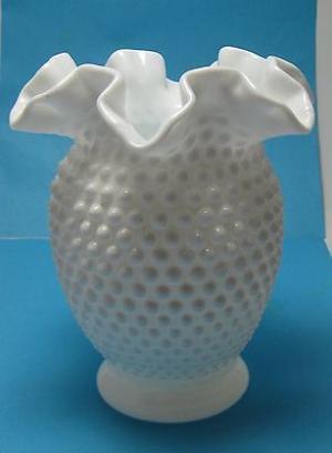 Vintage Fenton Hobnail Milk Glass Crimped Vase     Completed    $11.22