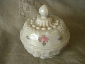 Painted Milk Glass Powder Puff Vanity Container     Completed    $11.25