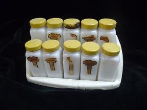 10 Vintage Griffiths Milk Glass Spice Jars & Rack     Completed    $11.3