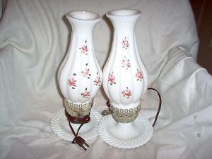 BEAUTIFUL PAIR OF VINTAGE MILK GLASS LAMPS     Completed    $11