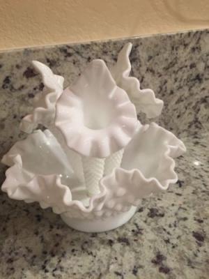 Fenton Epergne, Milk Glass, Hobnail     Completed    $11