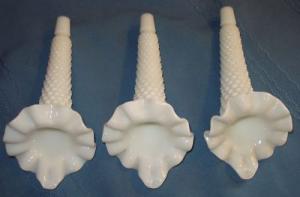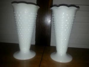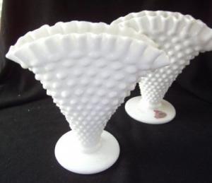 2 Fenton Milk Glass Hobnail Fan Vases     Completed    $10.99
