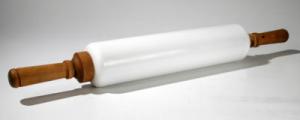 PRIMITIVE MILK GLASS ROLLING PIN WITH WOOD HANDLES.     Completed    $10.99