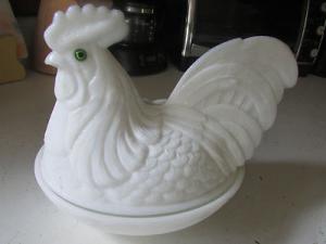 Large Milk Glass Hen on Nest with Green Eyes     Completed    $10.99