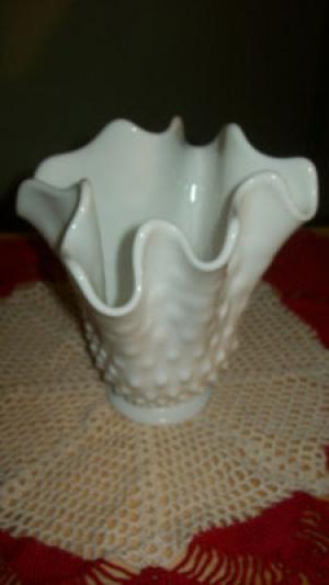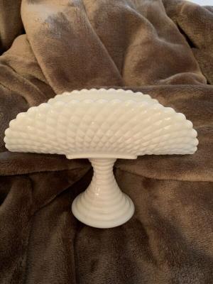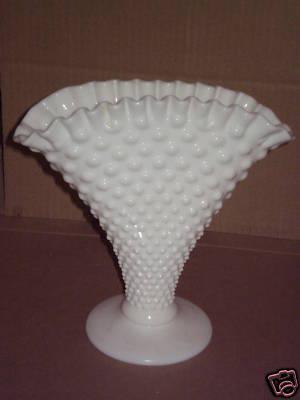 VINTAGE MILK WHITE GLASS HOBNAIL FAN VASE FENTON     Completed    $10.75