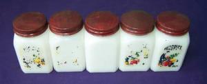 5 Anchor Hocking FIRE KING Milk Glass Spice Jars     Completed    $10.89