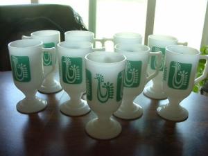 milk glass cups ( 9 ) aqua roosters     Completed    $10.79