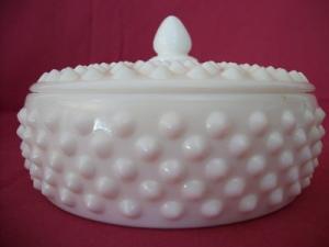 VINTAGE MILK GLASS HOBNAIL CANDY DISH WITH LID     Completed    $10.75