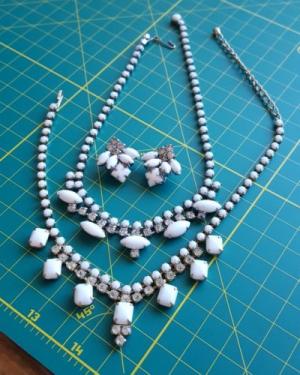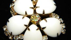Vintage Rhinestone Milk Glass Brooch     Completed    $10.6