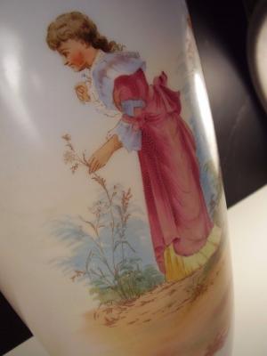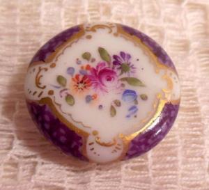 Antique MILK GLASS PAINTED FLOWERS Button W/ GOLD     Completed    $10.63