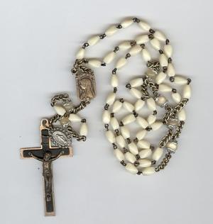 Vintage WHITE MILK GLASS & PAINTED BEAD NECKLACE     Completed    $10.5