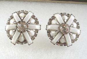 Vintage Milk Glass Clear Rhinestone Earrings BIG     Completed    $10.5