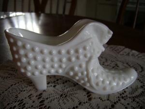 Vintage Hobnail Milk Glass Cat Head Shoe Boot     Completed    $10.5