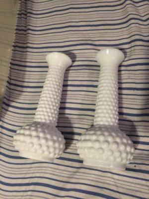 2 White Hobnail Milk Glass Brody Co. Bud Vases     Completed    $10.5