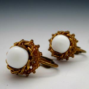 Vintage Milk Glass Rhinestone Circle Brooch     Completed    $10.5