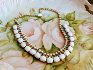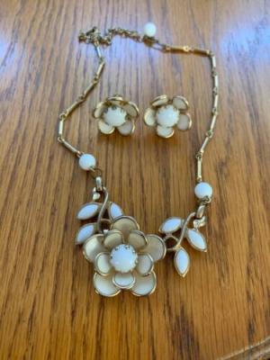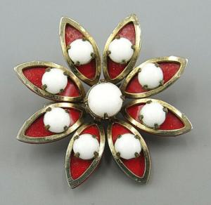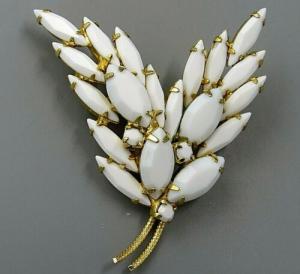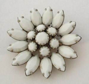 Vintage Milk Glass Rhinestone Flower Brooch     Completed    $10.5