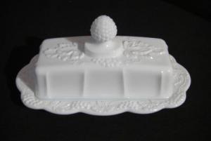 INDIANA MILK GLASS Harvest Grape Covered Butter     Completed    $10.49