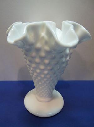 FENTON MILK GLASS DIAMOND LACE EPERGNE HORN VASE     Completed    $10.49