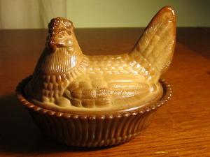 5" Boyd Glass MILK CHOCOLATE Hen on Nest Dish     Completed    $10.49