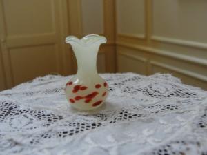 Dollhouse Miniature Milk Glass Vase w Red Swirls     Completed    $10.49