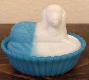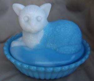 Antique Blue & White Milk Glass Cat in Basket     Completed    $10.49