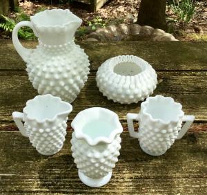 Vintage Fenton Milk Glass Hobnail Squatty Pitcher     Completed    $10.49
