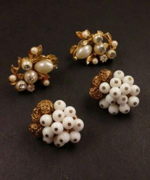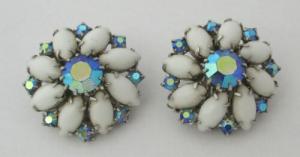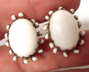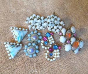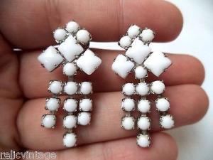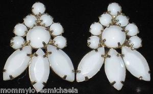 Vtg 5 Pairs Milk Glass Rhinestone Earrings Lot     Completed    $10.19