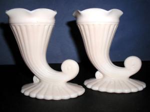 Pair Pink Milkglass Cornucopia Vases-Shabby & Chic!     Completed    $10.03